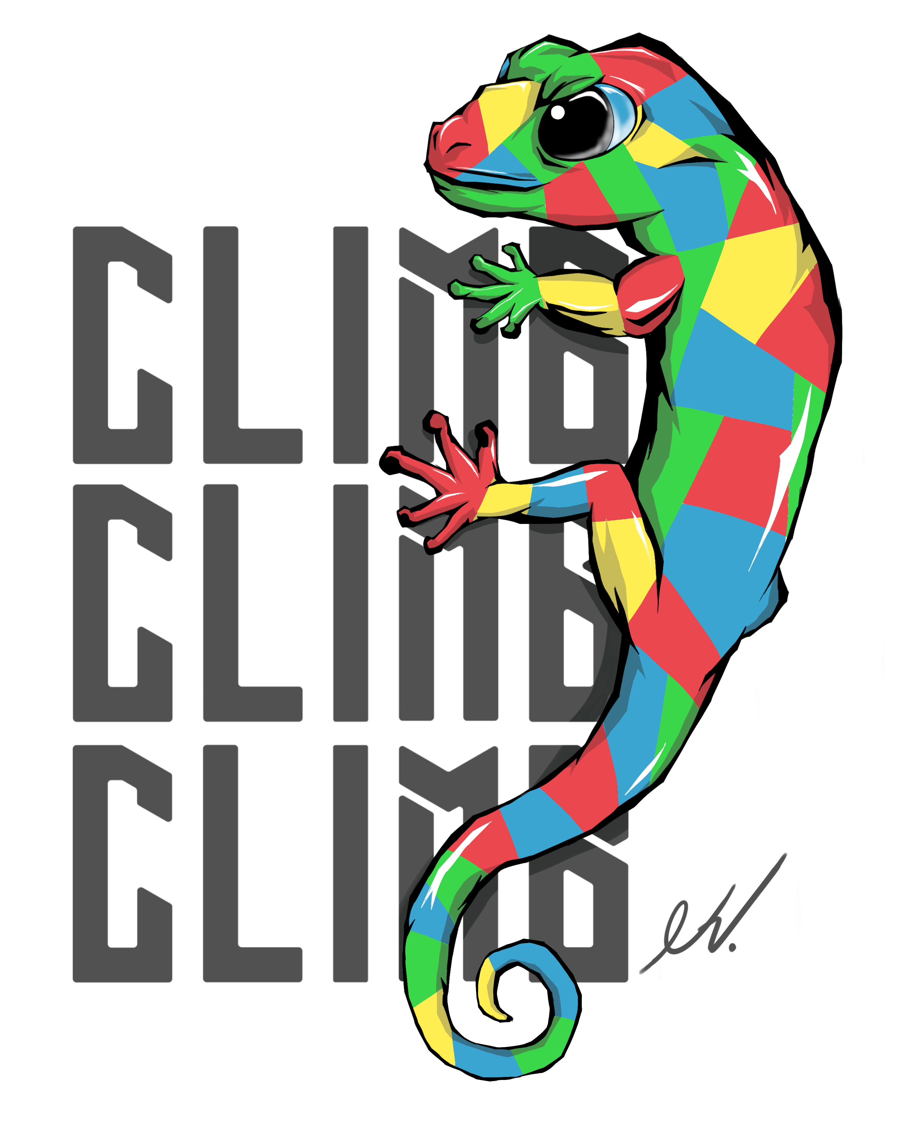 カラフルなホールドをイメージした野生クライマーをデザインしました。