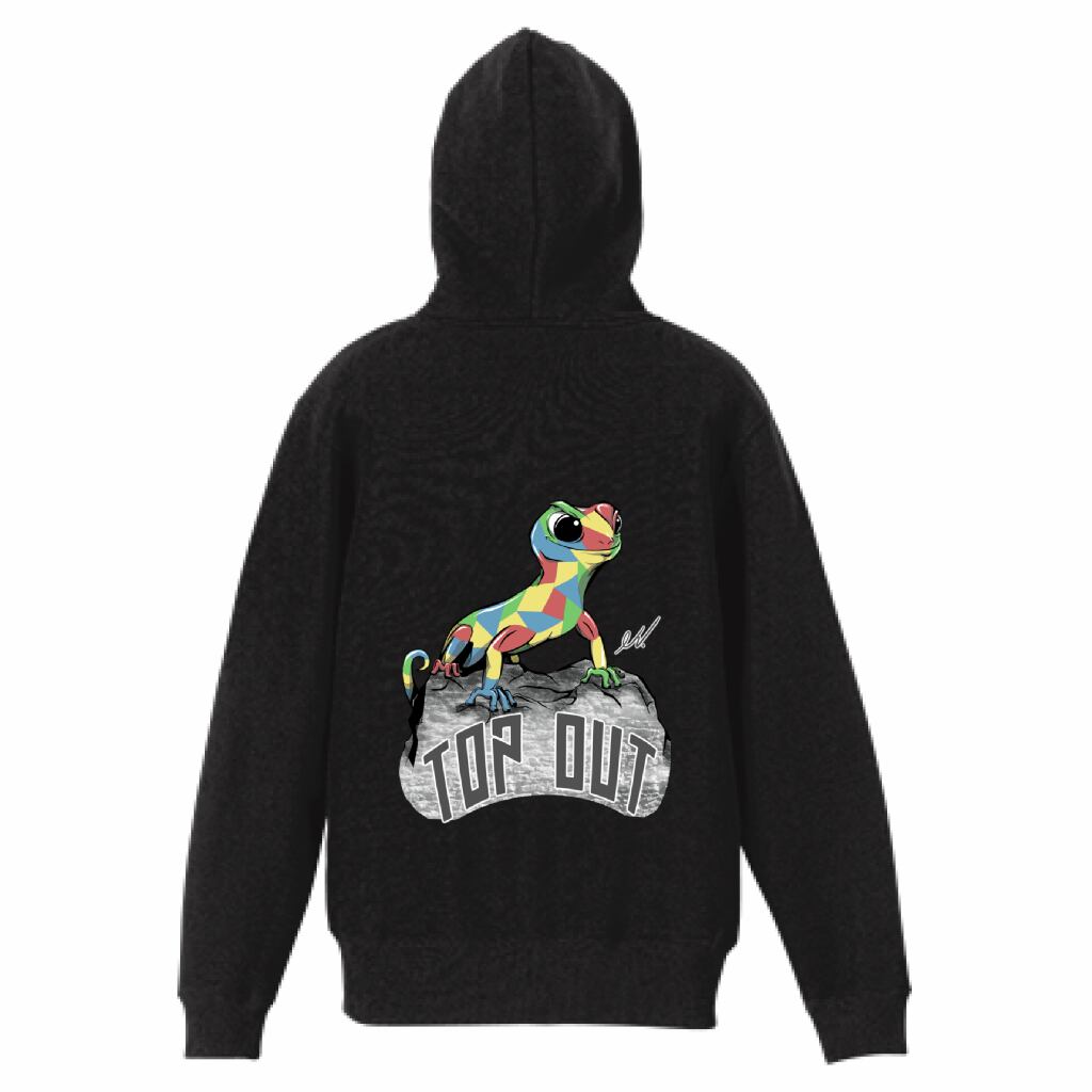 「ヤモリTOPOUT」ジップパーカーブラック(裏起毛)